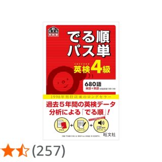 本書の特長は次の通りです。 英検過去問の分析に基づき、よく出題される語を「でる順」に掲載しています。 また、単語は効率的に覚えられるよう、英検にでる単語のうち、 中学1、2年の教科書で多く取り扱われている単語と英検に特徴的な単語の2ステップで学習できます。 さらに、見出し語を覚えたか確認できるミニテストも用意されていま...