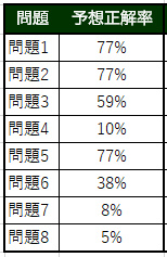 アンケートから推定した問題ごとの正解率は下表の通りです。
