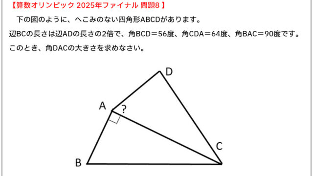 算数オリンピック 2025年 第34回算数オリンピック ファイナル解答速報! 2025年・第34回算数オリンピック トライアル解答速報! 2025年 第34回算数オリンピックの非公式解答速報です! ジュニア算オリ平均点と決勝ボーダー 一番... 2025.07.21 算数オリンピック
